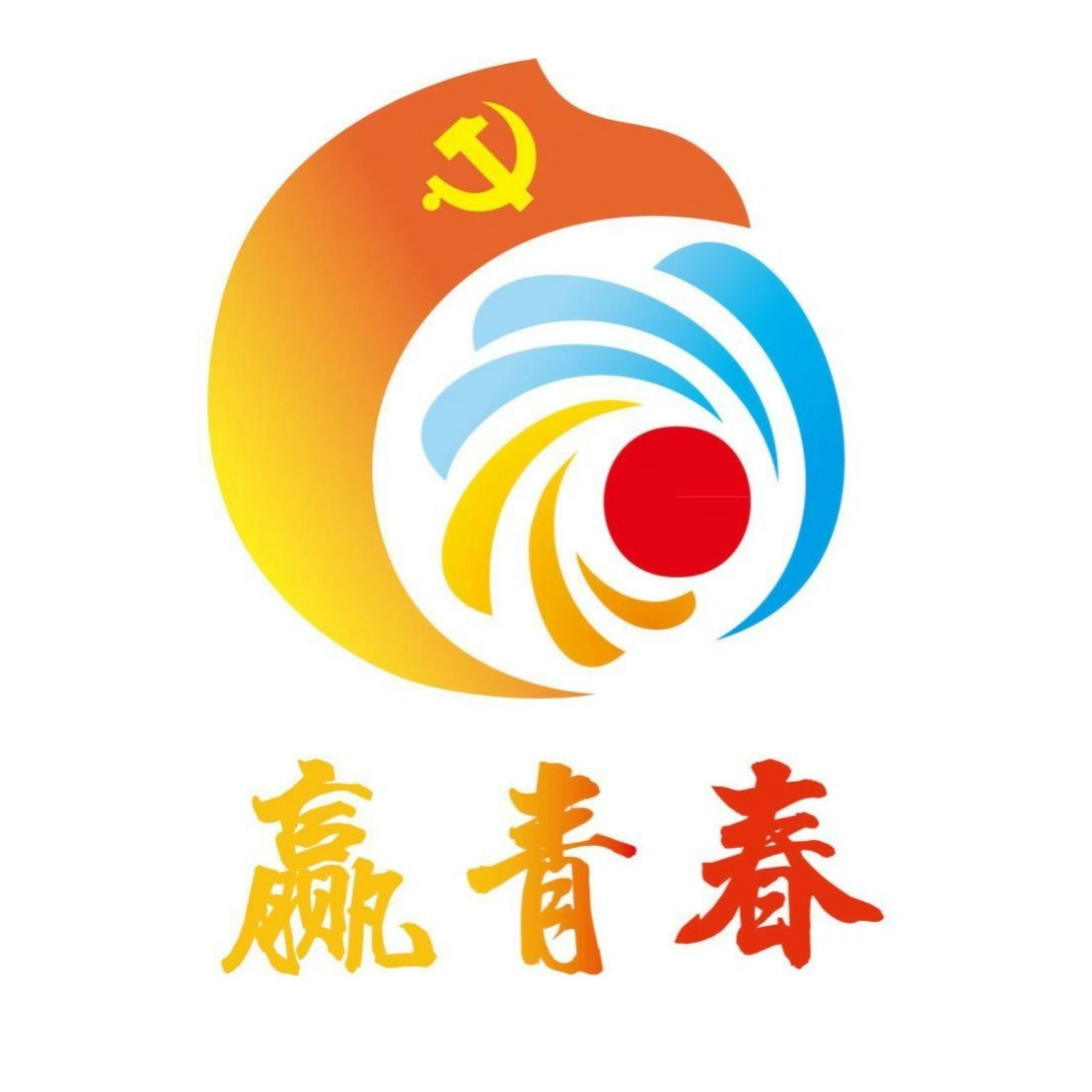 “贏青春”logo以金紅漸變色外圈象征輝煌與活力,黨徽高懸左上方,如明燈指引方向,包裹集團logo,寓意黨建引領企業(yè)發(fā)展、黨企同心。logo中心醒目呈...